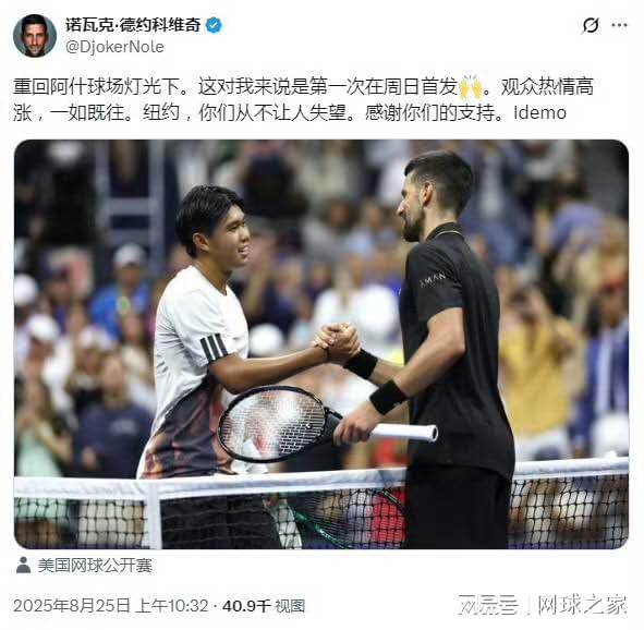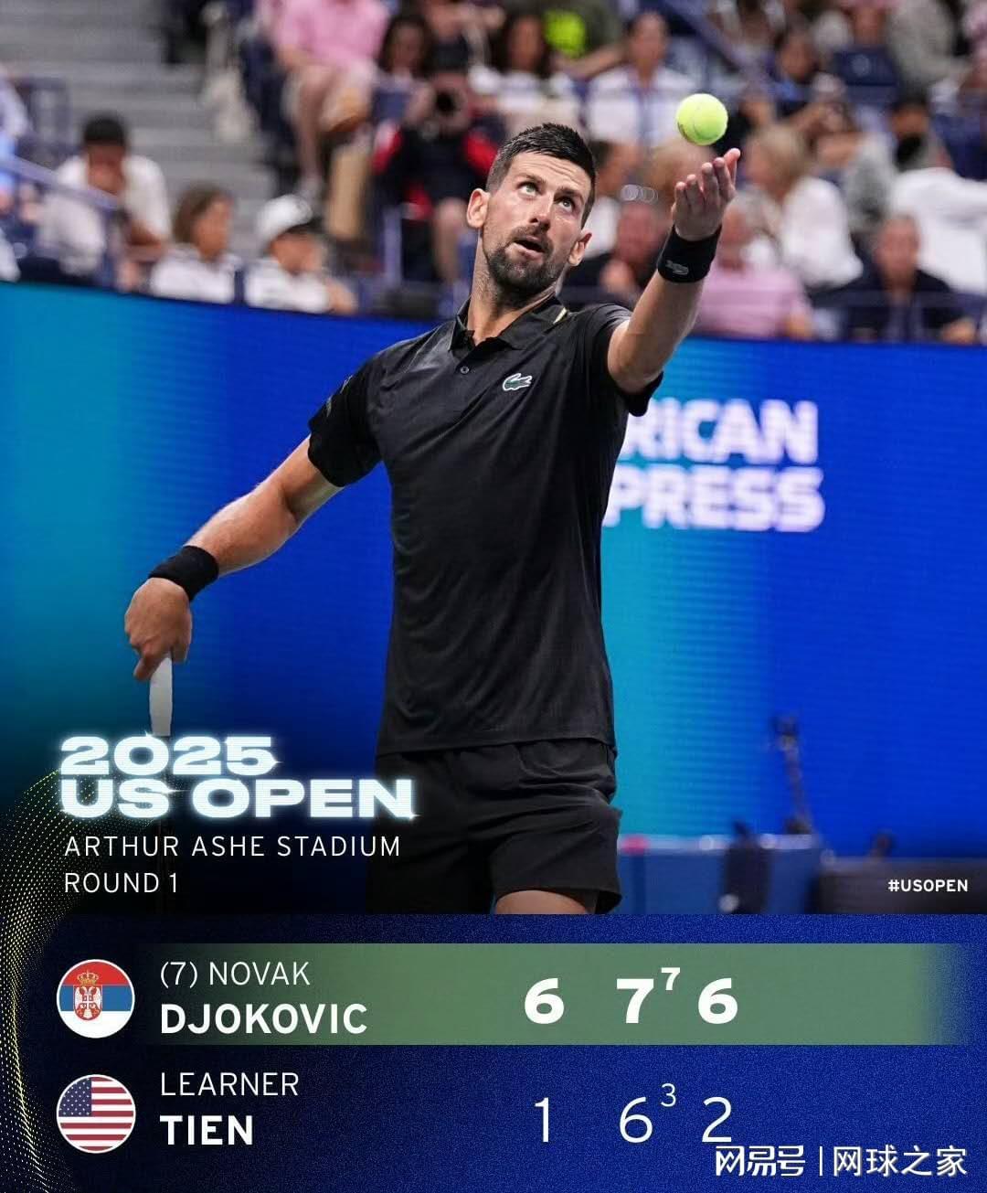 24届大满贯冠军得主德约科维奇在2025年美国网球公开赛男单首轮比赛中,直落三盘击败20岁的小将勒纳·钱,开启了他追逐第25个大满贯单打冠军的历史性旅程。