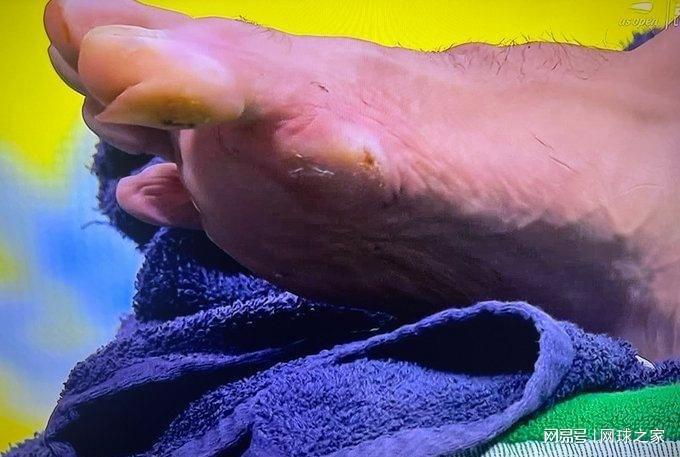 从转播镜头来看,德约科维奇的右脚脚趾水泡非常严重,尤其是大脚趾的脚皮都有些脱落,可以想见这对他在场上的移动会有多么严重的影响。