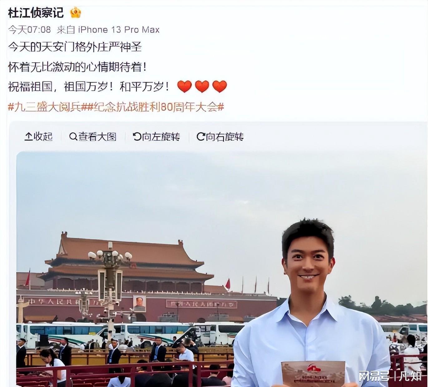 还有文学类的董宇辉也受邀来到天安门中,分享中有武警方阵、海军等,自己没有出镜这些也能证明他来到了现场。